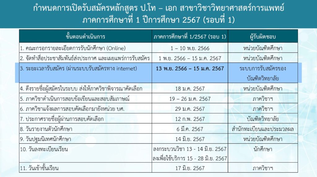 – ผู้สมัครสามารถบันทึกข้อมูลเบื้องต้น และกลับมาแก้ไขเพิ่มเติมได้ โดยใช้บัญชีผู้ใช้เดิม ในระหว่างช่วงเวลาเปิดรับสมัคร